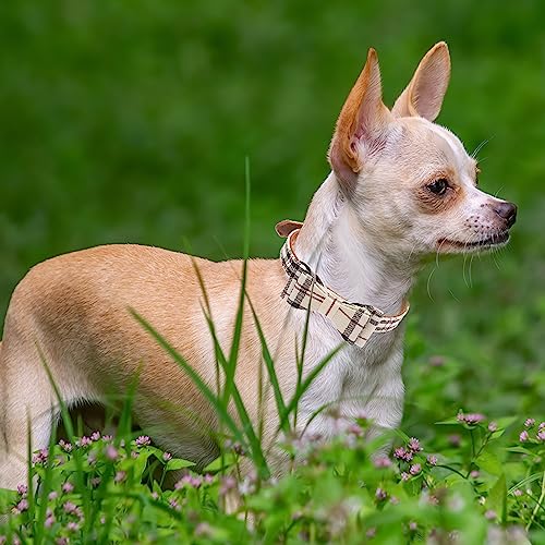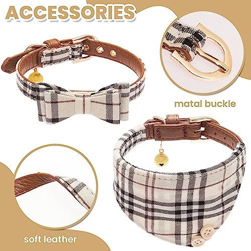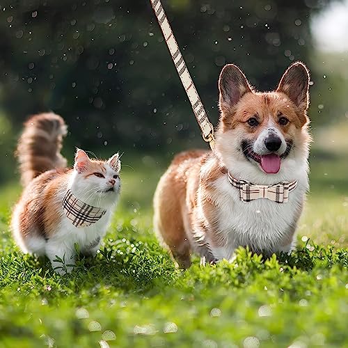 Unique Dog Collar Design: This dog collar and leahs set features a classic beige plaid pattern for a more elegant and charming look to your dog.The 2 dog collars have different shapes, bow tie and bandana, let your dog shows a different style after wearing it.